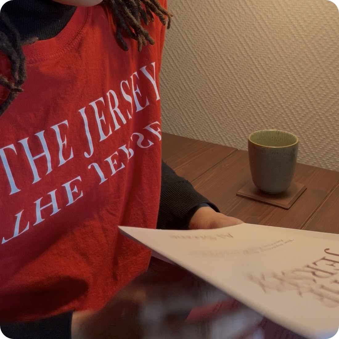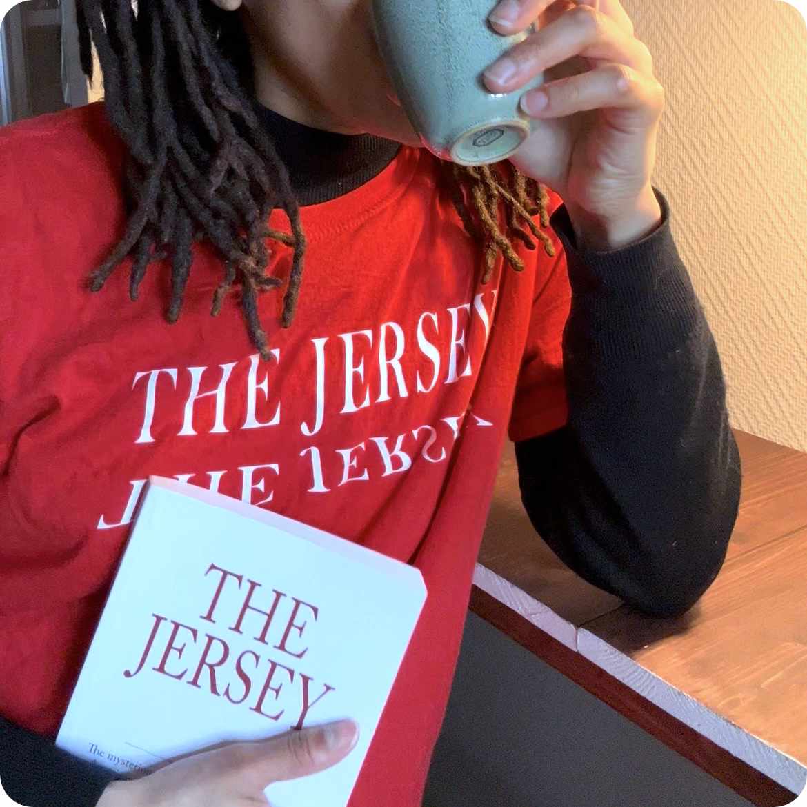 Bundle includes the book The Jersey and a red “The Jersey” reflected title t-shirt.